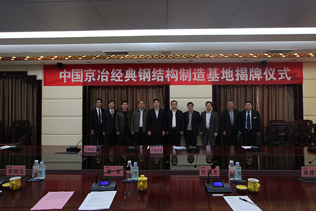 揭牌儀式前,中國(guó)京冶鋼結(jié)構(gòu)事業(yè)部常務(wù)副總經(jīng)理常好誦和經(jīng)典集團(tuán)董事長(zhǎng)苗樹(shù)文在公司三樓會(huì)議中心共同簽訂了戰(zhàn)略合作框架協(xié)議。中國(guó)京冶與經(jīng)典集團(tuán)將本著平等、誠(chéng)信、互惠、共贏的原則,利用各自優(yōu)勢(shì)在鋼結(jié)構(gòu)建筑領(lǐng)域建立長(zhǎng)期戰(zhàn)略合作伙伴關(guān)系,在高層、超高層鋼結(jié)構(gòu)建筑、大跨度鋼結(jié)構(gòu)建筑、鋼結(jié)構(gòu)住宅產(chǎn)業(yè)化、鋼結(jié)構(gòu)工程設(shè)計(jì)施工制造管理、節(jié)能環(huán)保維護(hù)系統(tǒng)等領(lǐng)域開(kāi)展項(xiàng)目工程合作、科研與技術(shù)合作。
