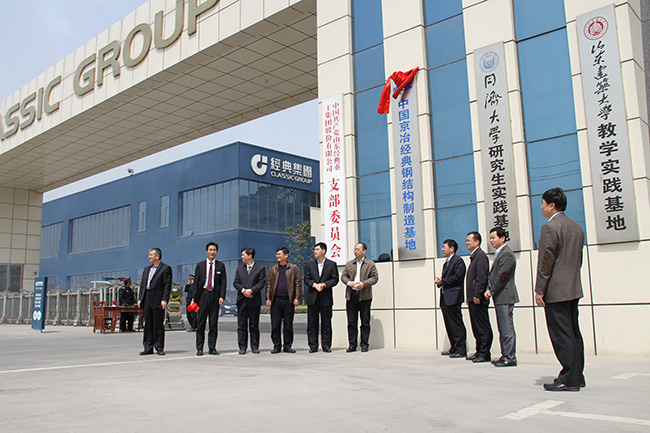 4月17日上午,經(jīng)典集團(tuán)舉辦中國(guó)京冶經(jīng)典鋼結(jié)構(gòu)制造基地揭牌儀式。中國(guó)鋼結(jié)構(gòu)協(xié)會(huì)秘書長(zhǎng)侯兆新,兗州區(qū)委常委、工業(yè)園區(qū)黨工委副書記、管委會(huì)副主任唐軍共同為基地揭牌。中國(guó)京冶工程技術(shù)有限公司鋼結(jié)構(gòu)事業(yè)部常務(wù)副總經(jīng)理常好誦,副總經(jīng)理桂宇飛,中國(guó)鋼結(jié)構(gòu)協(xié)會(huì)副秘書長(zhǎng)李寧,行業(yè)事務(wù)部部長(zhǎng)戴長(zhǎng)河,經(jīng)典集團(tuán)董事長(zhǎng)苗樹(shù)文,總經(jīng)理杜福生,生產(chǎn)總經(jīng)理王忠策,工會(huì)主席高建國(guó),企劃部經(jīng)理史振華等參加了揭牌儀式。