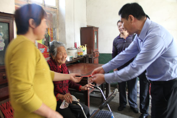 在漕河鎮(zhèn)敬老院,初部長(zhǎng)和苗董事長(zhǎng)一行聽(tīng)取了有關(guān)負(fù)責(zé)人的情況介紹,與敬老院老人親切握手,了解老人們的飲食起居、身體健康情況,送去了總價(jià)值近3萬(wàn)元的面粉、大米、色拉油、保溫壺、棉被等慰問(wèn)品,表達(dá)了對(duì)老人們的節(jié)日祝福。