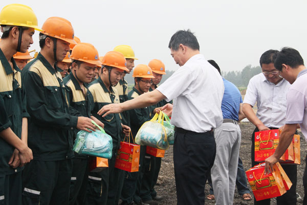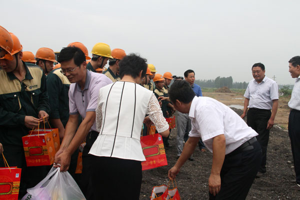 杜福生總經(jīng)理代表集團(tuán)職工對(duì)區(qū)領(lǐng)導(dǎo)的慰問表示誠(chéng)摯感謝。面對(duì)持續(xù)的高溫天氣,集團(tuán)公司堅(jiān)持以職工為本,制定了防暑降溫工作方案,在生產(chǎn)任務(wù)較重的情況下,合理安排了工作休息時(shí)間,為一線員工準(zhǔn)備了西瓜、冰鎮(zhèn)飲料等降暑食品以及藿香正氣水等物品,將公司宴會(huì)廳空調(diào)打開,為生產(chǎn)員工提供了休息場(chǎng)所,保障了一線職工的身體健康和企業(yè)的正常生產(chǎn)運(yùn)營(yíng)。廣大職工紛紛表示,將牢記領(lǐng)導(dǎo)的關(guān)懷和叮囑,以飽滿的工作熱情投入的生產(chǎn)、建設(shè)中去,用努力工作回報(bào)各級(jí)領(lǐng)導(dǎo)的關(guān)心和厚愛。