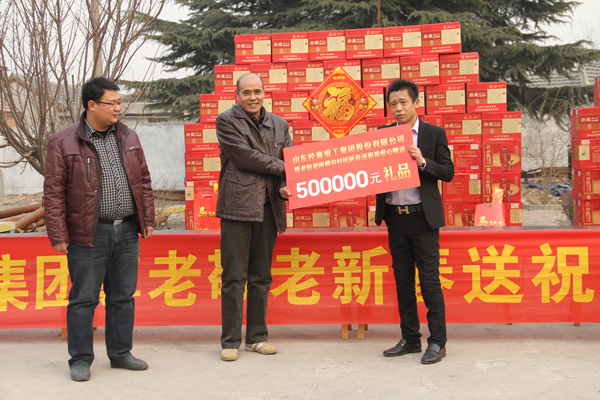 據了解,柳溝村共有家庭900余戶,60歲以上老人400余人。此次慰問活動,經典集團贈送府藏孔府家酒900箱、春聯580套總價值55萬元,受到了柳溝村老人們的熱烈歡迎,15戶特困家庭還收到慰問金500元。